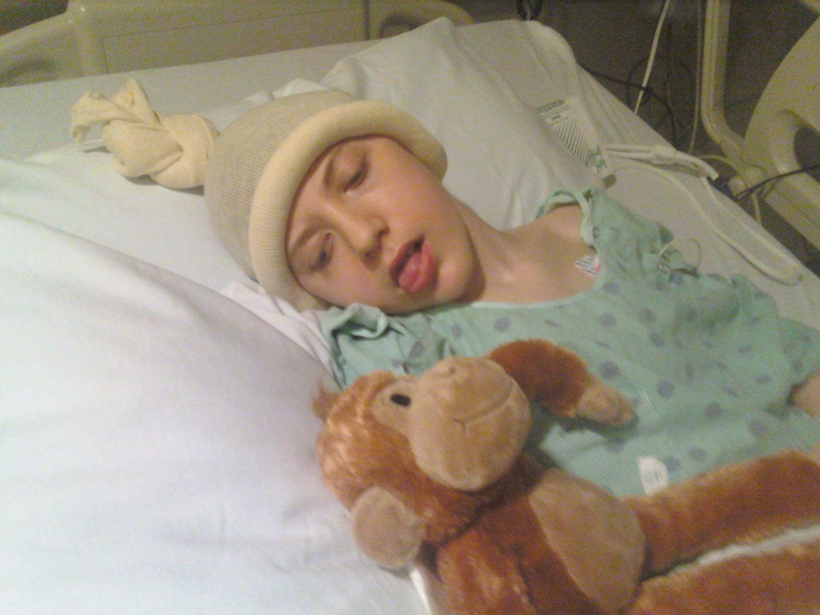 Telling Mommy it was time for a lemon swab. His mouth was very dry after surgery.