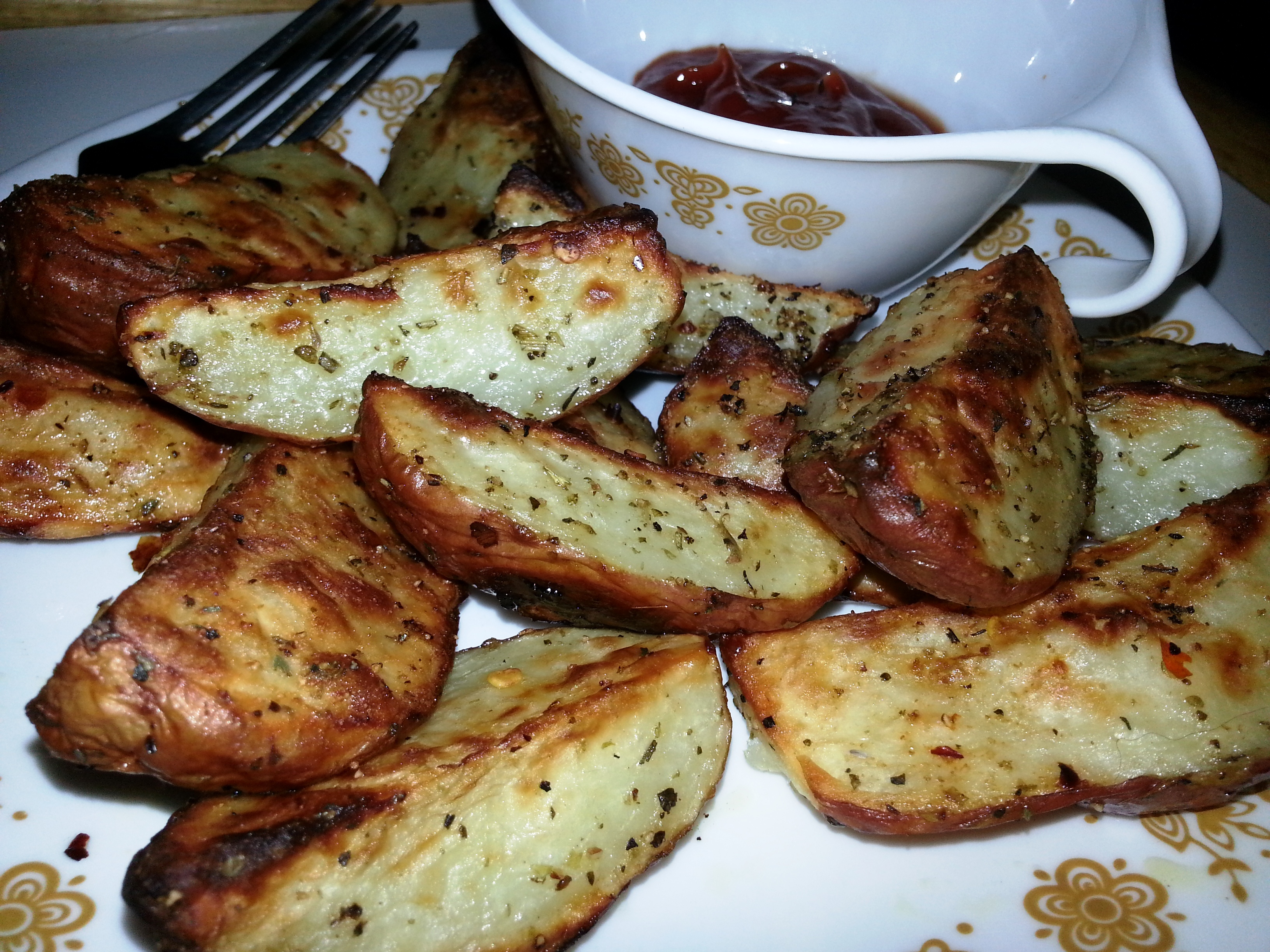Wednesday night, I came home from church, and my hubby had these yummy roasted potatoes ready.